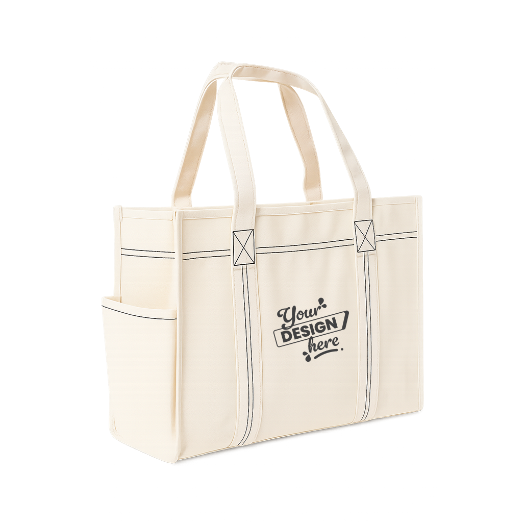 Lightweight 170g cotton canvas tote bag with reinforced stitching. Natural color, ideal for printing or embroidery.